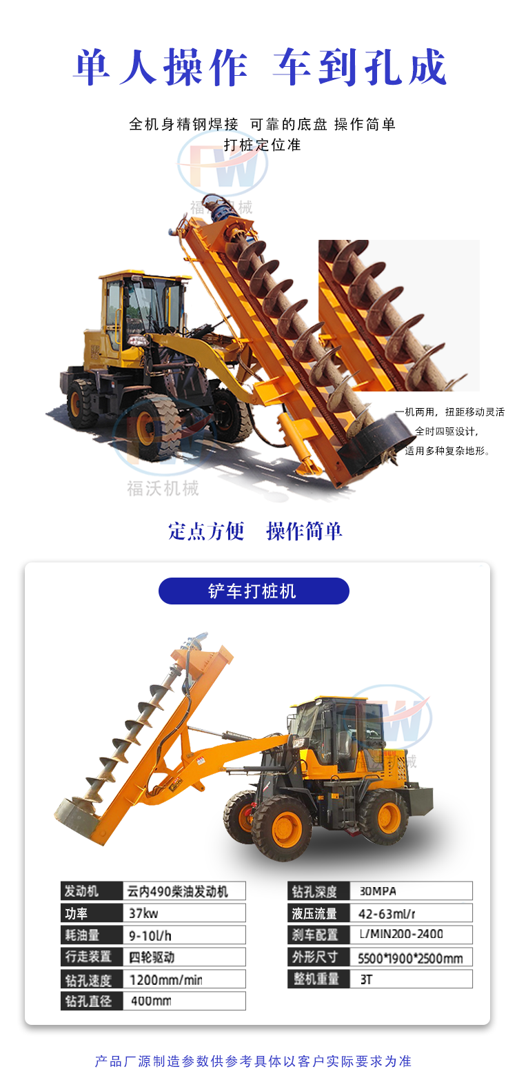 电线杆打孔机 装载车改装打桩机 铲车式麻花钻机